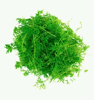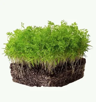 Carrot microgreens are young, tender greens with a delicate, mildly sweet carrot flavor and a fine, feathery texture similar to dill